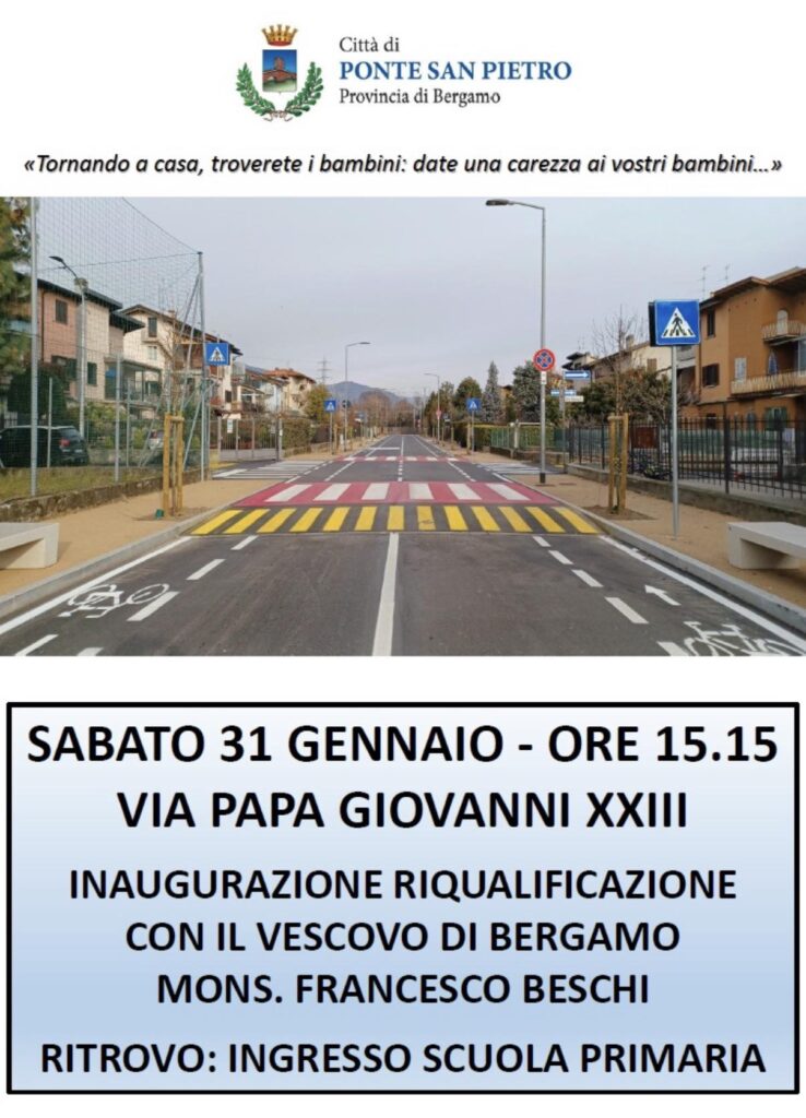- Ore 15:15: Un momento solenne per la memoria del paese. Di fronte alle scuole del Villaggio, si terrà l’inaugurazione e la benedizione di “Via Papa Giovanni XXIII”.