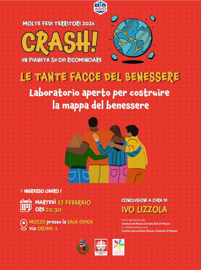 Costruire una mappa condivisa del benessere, individuando i punti di luce ma anche le zone d’ombra del proprio territorio. È questo l’obiettivo della serata “Le tante facce del benessere”, organizzata per martedì 17 febbraio alle ore 20:30 presso la Sala Civica “M. Boninelli” di Mozzo (via Orobie, 1). L’evento rientra nel prestigioso calendario di Molte Fedi sotto lo stesso cielo, nello specifico all’interno del percorso “Territori 2026 – Crash! Un pianeta su cui ricominciare”.