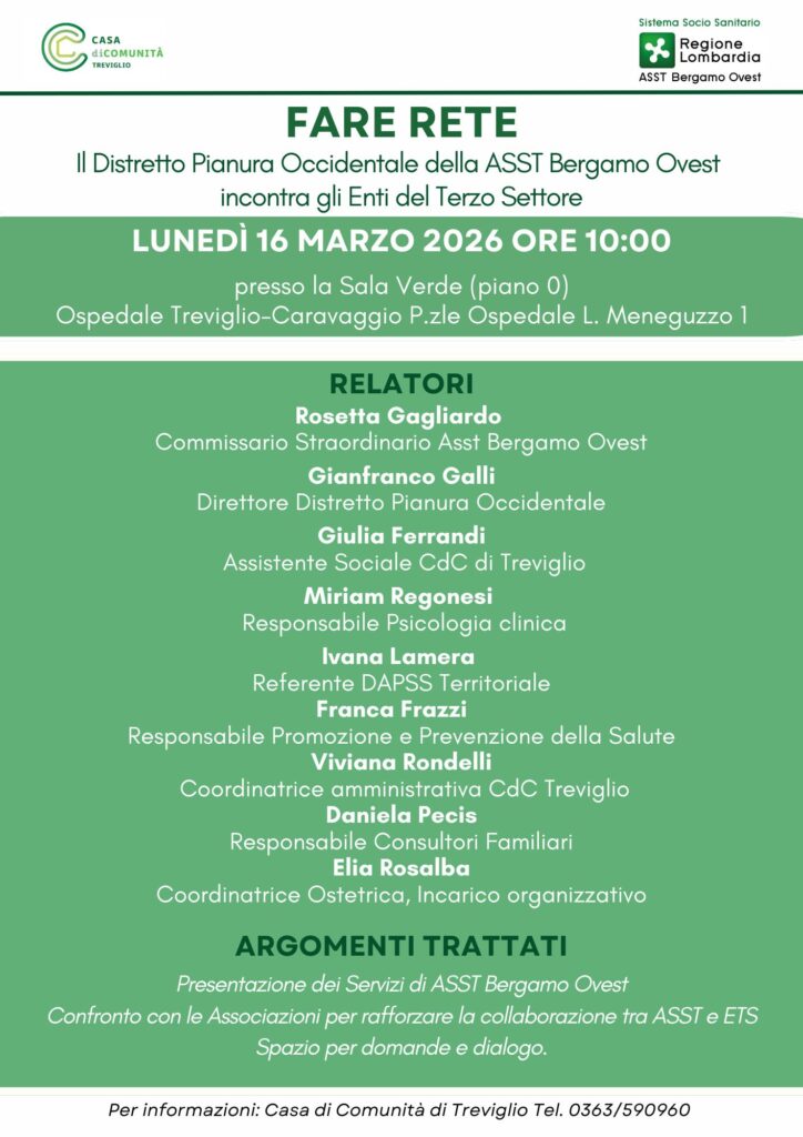 Il tavolo di confronto si terrà lunedì 16 marzo 2026 alle ore 10:00, e sarà ospitato all’interno della Sala Verde (piano 0) dell’Ospedale Treviglio-Caravaggio. Oltre ai vertici aziendali, interverranno attivamente i professionisti dei servizi territoriali: assistenti sociali, psicologi e referenti dei consultori familiari.